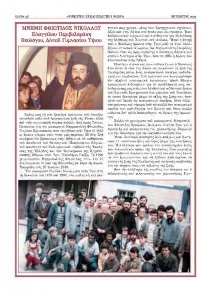 Πρόκειται για Ειδική Έκδοση 48 σελίδων, η οποία αποτελεί Αφιέρωμα στον μακαριστό Μητροπολίτη κυρό Νικόλαο, ο οποίος εξεδήμησε αιφνιδίως προς Κύριον τη 27η Ιουλίου ε. ε.