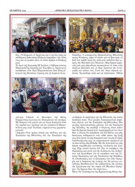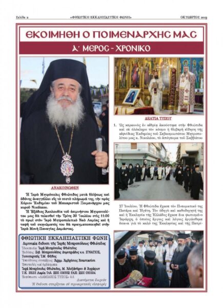 Κυκλοφορήθηκε από τις Εκδόσεις της Ιεράς Μητροπόλεως Φθιώτιδος το Νέο τεύχος της Εφημερίδος «Φθιωτική Εκκλησιαστική Φωνή».