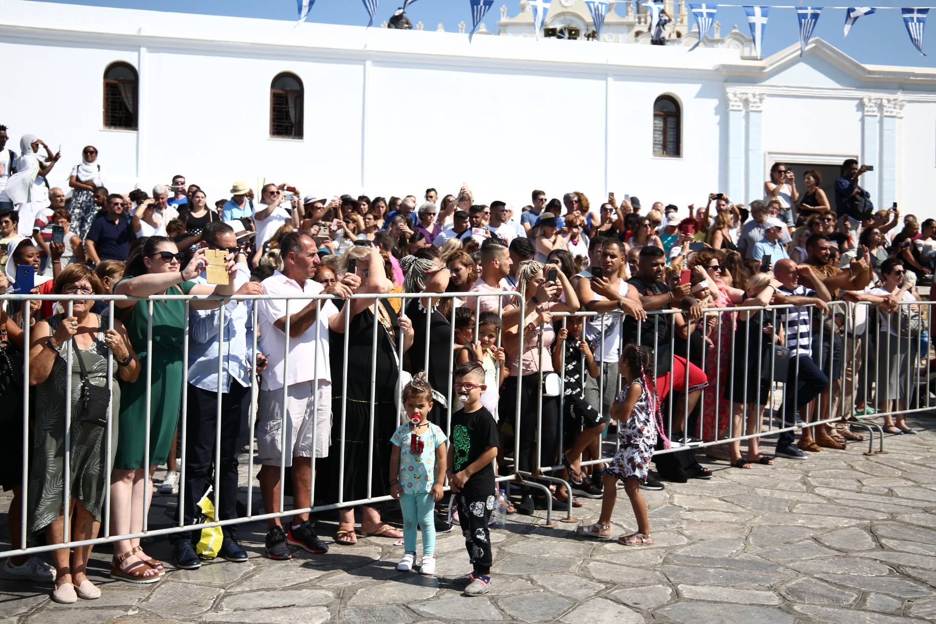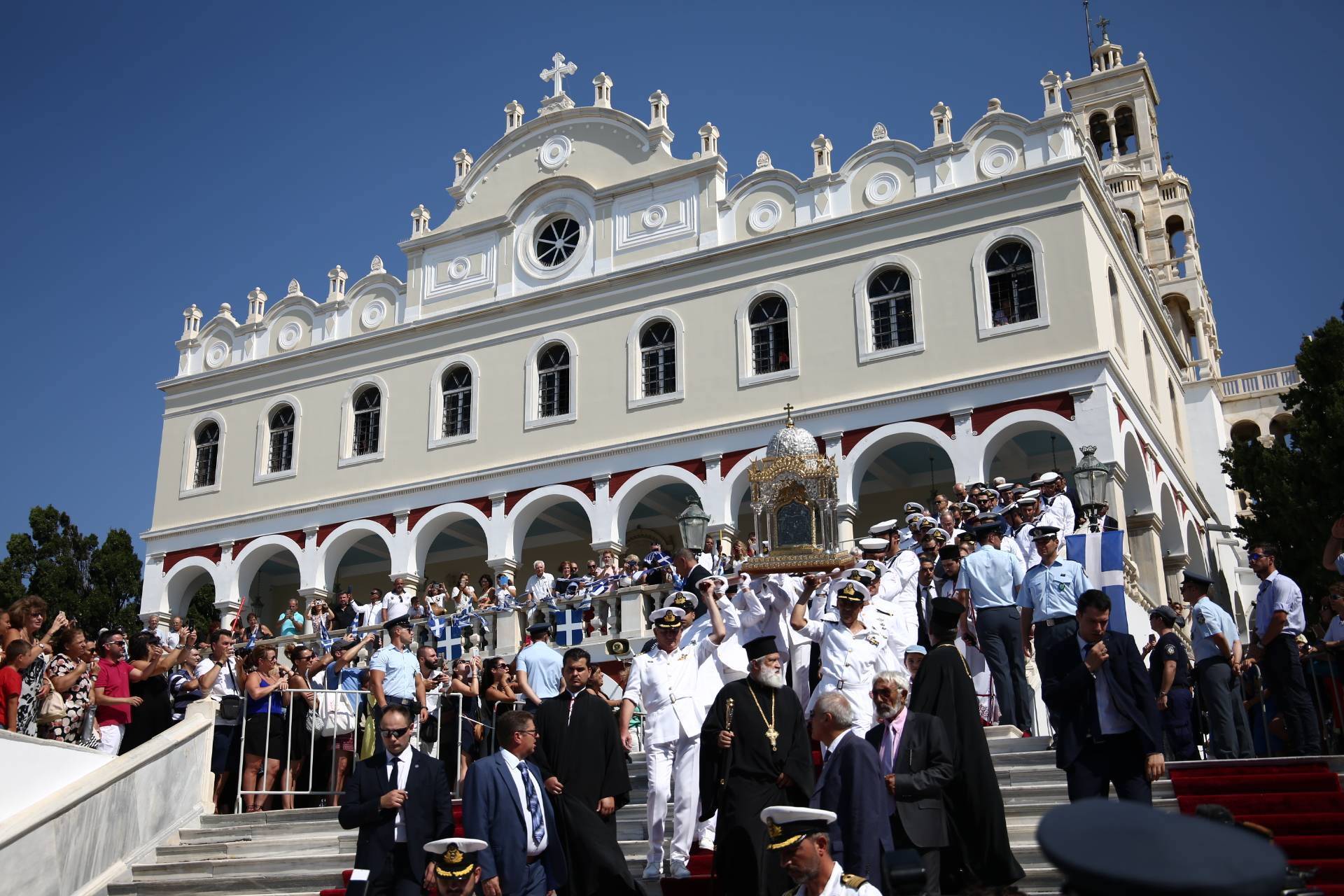 Σε κλίμα κατάνυξης, με λαμπρότητα και με τη συμμετοχή εκπροσώπων της κυβέρνησης, του Κοινοβουλίου, των τοπικών Αρχών, της στρατιωτικής ηγεσίας του τόπου, πολιτευτών, καθώς και με την παρουσία πλήθους πιστών, τελέσθηκε ο εορτασμός της Κοίμησης της Θεοτόκου στην Τήνο.