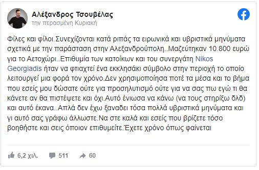 Έκαναν διαδικτυακό πόλεμο στον Αλέξανδρο Τσουβέλα επειδή βοήθησε να φτιαχτεί ένα καμένο εκκλησάκι στον Έβρο!