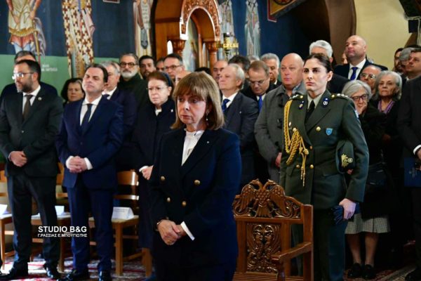 Η κυρία Σακελλαροπούλου παρακολούθησε τη δοξολογία στον Ιερό Ναό της Ευαγγελιστρίας και στη συνέχεια κατέθεσε στεφάνι στην Αναθηματική στήλη στην πλατεία της Α’ Εθνοσυνέλευσης.