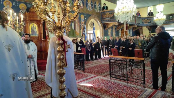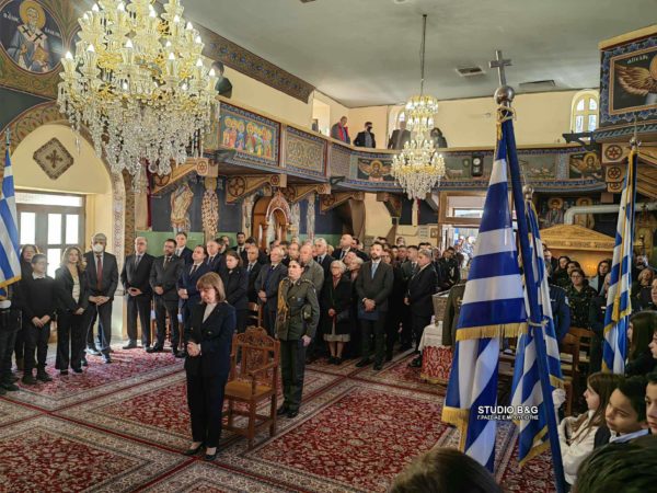 Τη δοξολογία και την επιμνημόσυνη δέηση τέλεσε ο Σεβαμιώτατος Μητροπολίτης Αργολίδος κ. Νεκτάριος, ενώ έψαλλε χορός από τη Σχολή Βυζαντινής Μουσικής της Ιεράς Μητροπόλεως Αργολίδος, Τμήματος Λυγουριού με χοράρχη τον Πρωτοψάλτη του Μητροπολιτικού Ιερού Ναού Αγίου Γεωργίου Ναυπλίου και Καθηγητή της Σχολής Δημήτριο Καρκαλάτο.