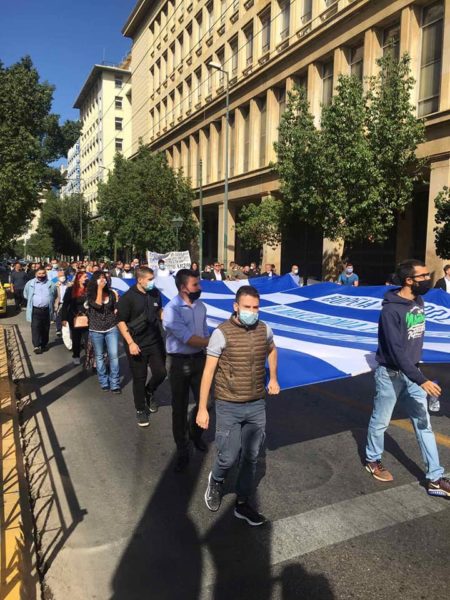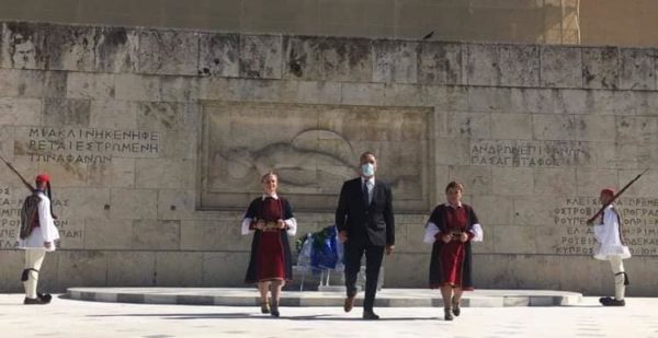 Ακολούθησε πορεία, με προπορευόμενη την μεγάλη ελληνική σημαία του Κωνσταντίνου Κατσίφα, στο Μνημείο του Άγνωστου Στρατιώτη, όπου ήταν παρών ο Περιφερειάρχης Αττικής Γιώργος Πατούλης.