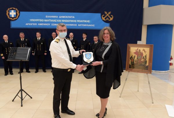 Στο τέλος της εκδήλωσης, ο Διευθυντής του Κλάδου Διοίκησης και Ηλεκτρονικής Διακυβέρνησης, Υποναύαρχος Λ.Σ. Μάζης Αντώνιος, εκπροσωπώντας τον Αρχηγό Λ.Σ.-ΕΛ.ΑΚΤ., επέδωσε θυρεό στην κ. Κολοβοπούλου, ευχαριστώντας την θερμά για τη συμμετοχή της.
