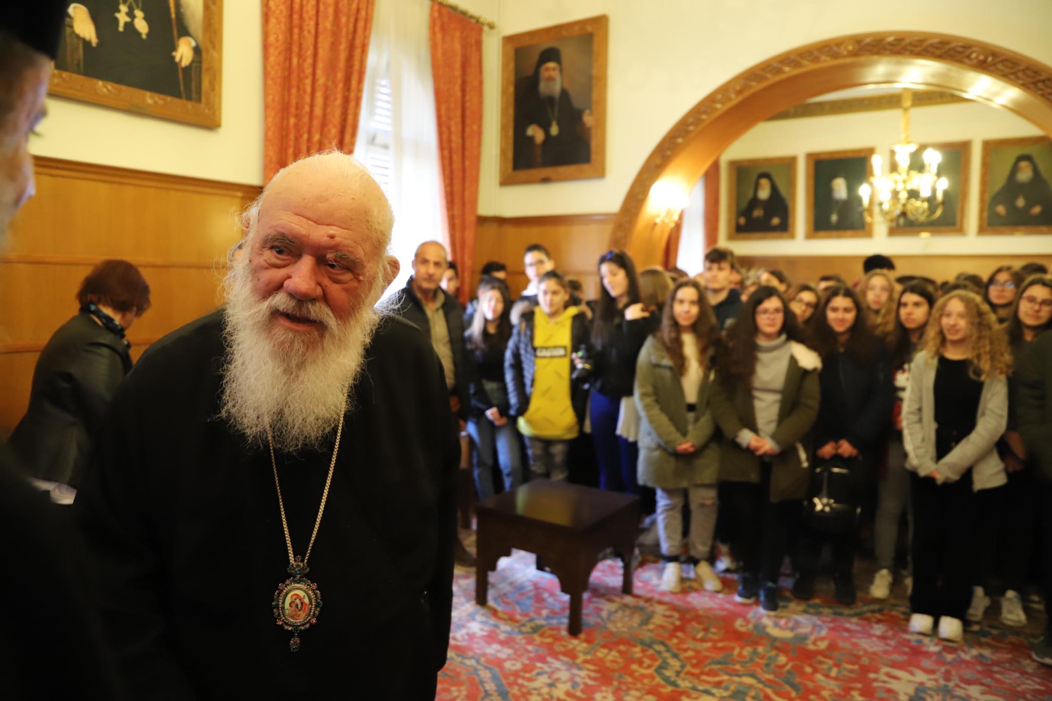Περίπου εκατό μαθητές της Γ’ Γυμνασίου από το 68ο Γυμνάσιο Αθηνών επισκέφθηκαν σήμερα τον Αρχιεπίσκοπο Αθηνών και Πάσης Ελλάδος κ.κ. Ιερώνυμο.