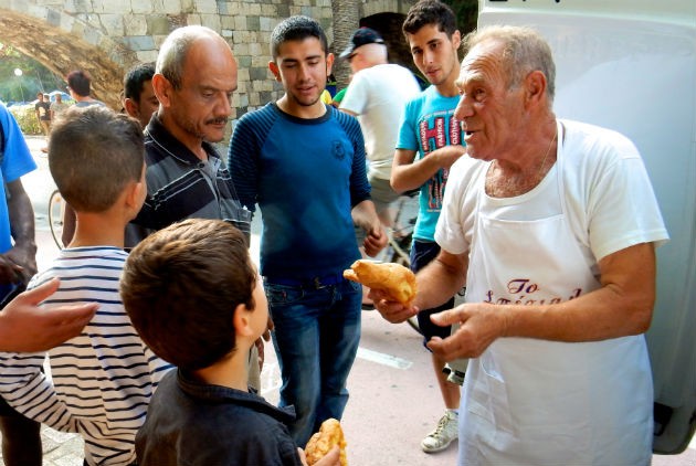 Ο Διονύσης Αρβανιτάκης έφτιαχνε και διένειμε ψωμιά σχεδόν σε καθημερινή βάση στους εκατοντάδες πρόσφυγες που έφταναν στο νησί, πριν δημιουργηθούν οι δομές φιλοξενίας.