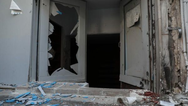 Προκλήθηκαν σοβαρές ζημιές στην είσοδο της πολυκατοικίας που στέγαζε τον άτυπο χώρο λατρείας και σε δυο σταθμευμένα αυτοκίνητα.
