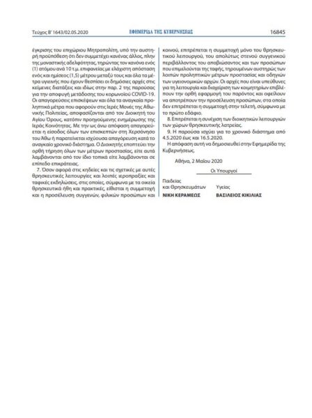 ΑΚΟΛΟΥΘΕΙ ΤΟ ΦΕΚ (Β’ αρ. Φ. 1643) ΤΗΣ 2ας ΜΑΪΟΥ 2020 – ΔΙΑΒΑΣΤΕ ΤΟ ΑΝΑΛΥΤΙΚΑ