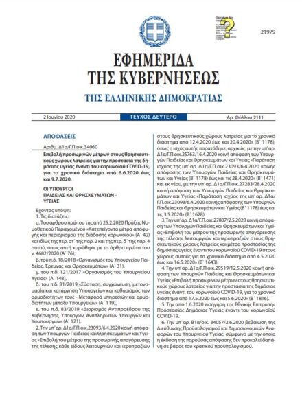ΔΙΑΒΑΣΤΕ ΑΝΑΛΥΤΙΚΑ ΤΟ ΦΕΚ ΤΗΣ ΤΡΙΤΗΣ 2ας ΙΟΥΝΙΟΥ 2020:
