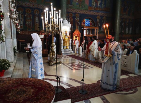 Ο σεπτός Ποιμενάρχης κ. Θεόκλητος , προεξήρχε της θείας ευχαριστίας πλαισιωμένος από τους ιερείς του ναού και άλλους κληρικούς της Αρχιεπισκοπής Αθηνών.