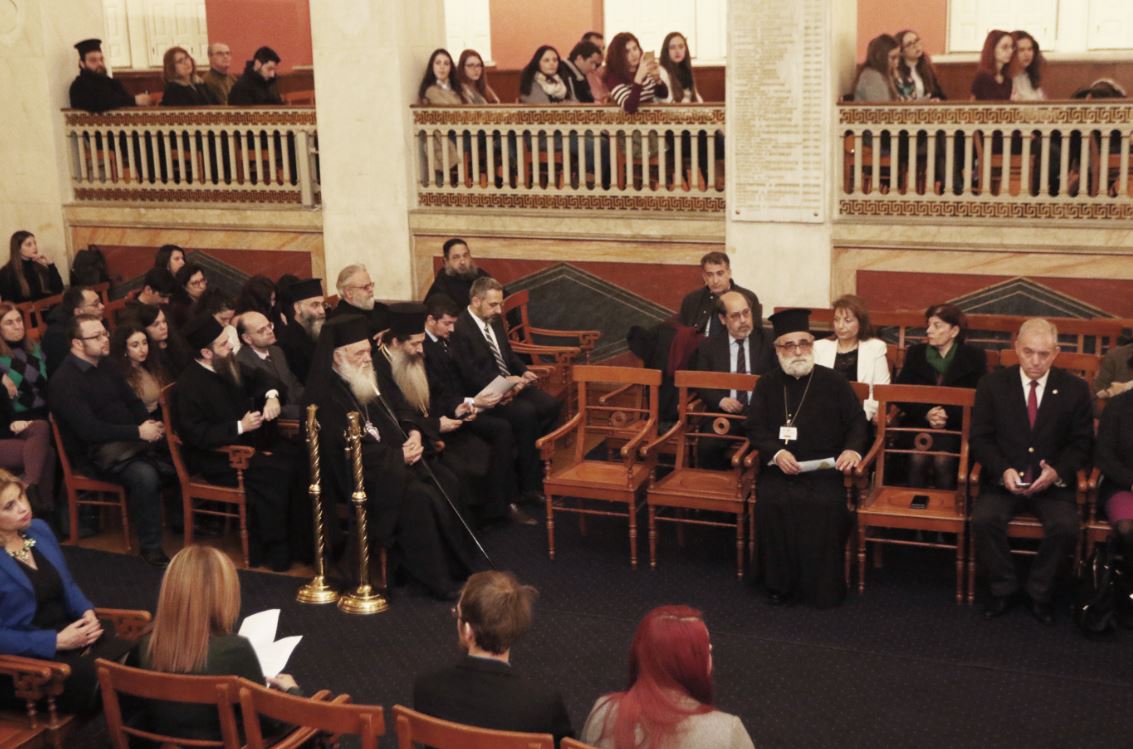 Παρουσία του Αρχιεπισκόπου Αθηνών και πάσης Ελλάδος κ. Ιερωνύμου άρχισε σήμερα το απόγευμα το διεπιστημονικό συνέδριο «Θρησκείες και Ανθρώπινα Δικαιώματα», του οποίου το Διεθνές Πρακτορείο Εκκλησιαστικών Ειδήσεων ΟΡΘΟΔΟΞΙΑ είναι επίσημος χορηγός επικοινωνίας, που διοργανώνει το τμήμα Κοινωνικής Θεολογίας -πρόγραμμα μεταπτυχιακών σπουδών- της Θεολογικής Σχολής του Εθνικού και Καποδιστριακού Πανεπιστημίου Αθηνών. Η έναρξη του συνεδρίου πραγματοποιήθηκε στην Μεγάλη αίθουσα του πανεπιστημίου. Τον Αρχιεπίσκοπο συνόδευε ο Πρωτοσύγκελλος της Αρχιεπισκοπής, Επίσκοπος Θεσπιών κ. Συμεών, ενώ παρέστησαν, επίσης, οι πρόεδροι των τμημάτων, καθηγητές και φοιτητές, ο αναπληρωτής Διευθυντής του Ιδρύματος Ποιμαντικής Επιμόρφωσης της Αρχιεπισκοπής Αρχιμ. Θεολόγος Αλεξανδράκης, κλήρος και λαός.