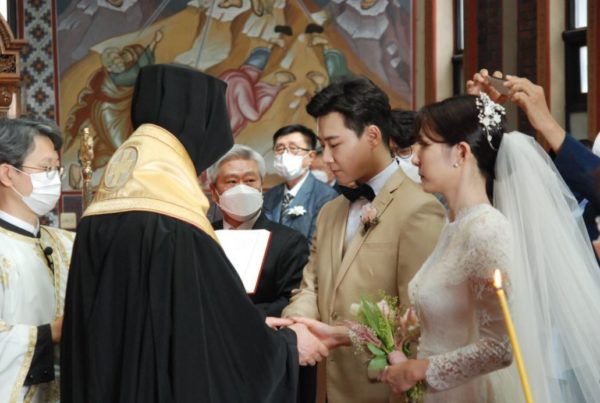 Στα τέλη του περασμένου μήνα οι ορθόδοξοι πιστοί της Κορέας έζησαν την μεγάλη χαρά της τελέσεως του Μυστηρίου του Γάμου των Διονυσίου Kwon και της Κατερίνας Park στον καθεδρικό ναό του Αγίου Νικολάου στην Σεούλ.