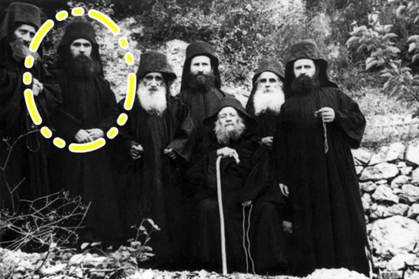 Στην παρακάτω φωτογραφία, διακρίνονται όρθιοι από αριστερά: π. Χαράλαμπος (μετέπειτα ηγούμενος της Ι. Μονής Διονυσίου), μπάρμπα Γιάννης ο ψαράς, μον. Ευστράτιος, μον. Ιωσήφ (μετέπειτα Γέροντας Ιωσήφ Βατοπαιδινός), μον. Αθανάσιος (κατά σάρκα αδελφός του Ιωσήφ Ησυχαστού), μον. Νικόδημος, π. Εφραίμ (μετέπειτα ηγούμενος της Ι. Μονής Φιλοθέου και της Ι.Μ. Αγίου Αντωνίου Αριζόνας). Καθιστοί από αριστερά: Γέροντας Αρσένιος, Γέροντας Ιωσήφ ο Ησυχαστής, Γέροντας Θεοφύλακτος Νεοσκητιώτης.