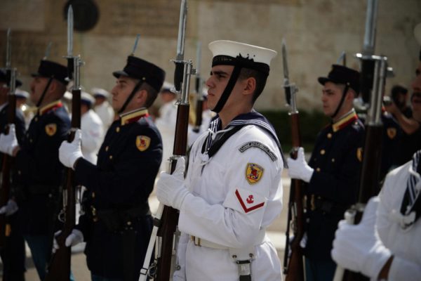 Μετά την Έπαρση, η Στρατιωτική Μπάντα ανέκρουσε τον Εθνικό Ύμνο, ολοκληρώνοντας την τελετή με την πρέπουσα επισημότητα.