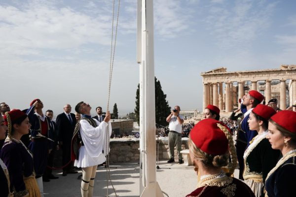 Το πρωί, ο Δήμαρχος Αθηναίων, Χάρης Δούκας και εκπρόσωποι της πολιτειακής, πολιτικής, στρατιωτικής ηγεσίας και της Εκκλησίας έδωσαν το παρών στην τελετή Έπαρσης της Σημαίας της Απελευθέρωσης, στον Ιστό του Ιερού Βράχου της Ακρόπολης.