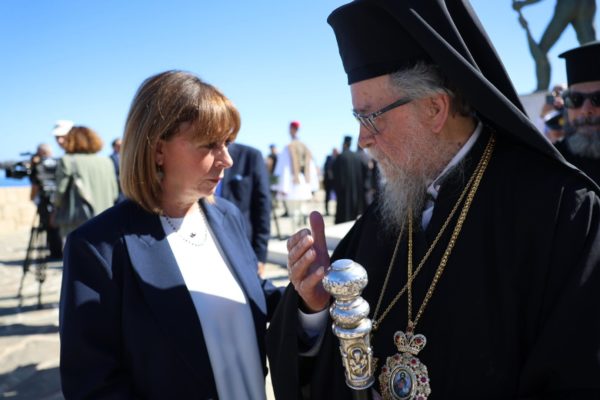 Η κυρία Σακελλαροπούλου, μετά τη δοξολογία στον Ιερό Ναό Κοιμήσεως της Θεοτόκου Δημοτικής Κοινότητας Μενετών προεξάρχοντος του Σεβασμιωτάτου Μητροπολίτη Καρπάσου και Κάσου κ. Αμβροσίου, κατέθεσε στεφάνι στο Μνημείο της 5ης Οκτωβρίου 1944 και έκανε την ακόλουθη δήλωση: