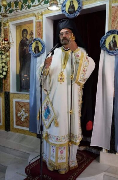 Ολοκληρώνοντας ο Θεοφιλέστατος την ομιλία του αναφέρθηκε στον Ποιμενάρχη μας και του ευχήθηκε για τα ονομαστήριά του: