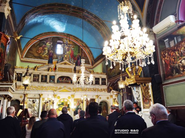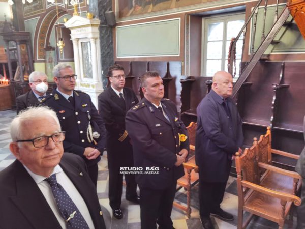 Στις 10.00 το πρωί τελέστηκε δοξολογία στον Ιερό Ναό του Αγίου Σπυρίδωνος από τον π. Παναγιώτη Κιντή και εκφώνηση του πανηγυρικού της ημέρας, ενώ έψαλε ο Πρωτοψάλτης του Μητροπολιτικού Ναού Αγίου Γεωργίου και Πρόεδρος του Συλλόγου Ιεροψαλτών Αργολίδας Δημήτριος Καρκαλάτος.
