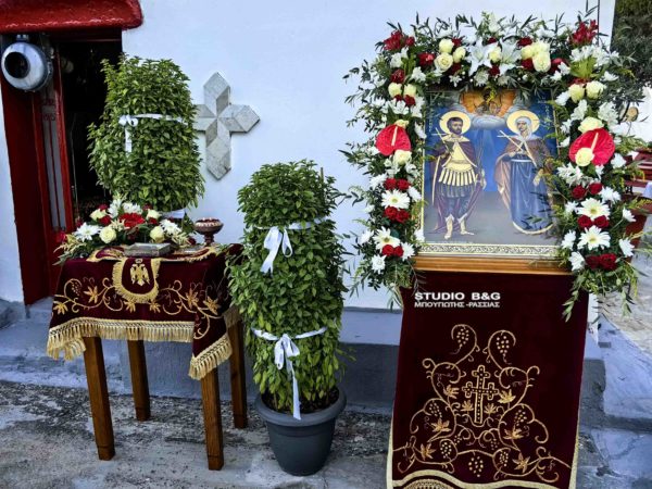 Μετά το πέρας της θείας λειτουργίας ο εφημέριος του ναού π. Παναγιώτης Δήμας ευχαρίστησε τους πιστούς που τίμησαν τους Αγίους Αδριανό και Ναταλία.