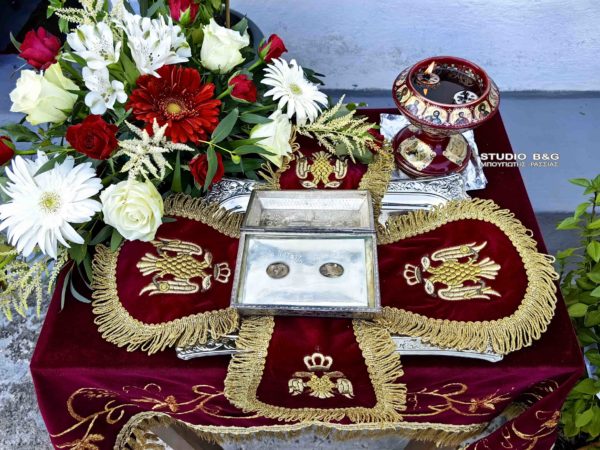 Κατά τη διάρκεια της ακολουθίας, είχε τεθεί προς προσκύνηση τμήμα Ιερού Λειψάνου των Αγίων Αδριανού και Ναταλίας.