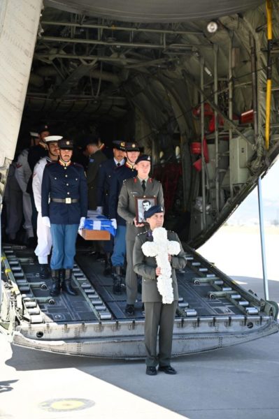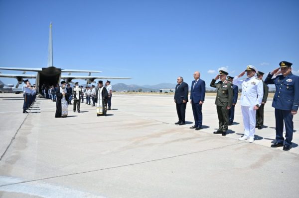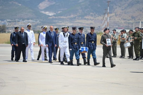 31/05/2024 02/06/2024 H τελετή επαναπατρισμού των λειψάνων εννέα Ελλήνων Οπλιτών από την Κυπριακή Δημοκρατία, πραγματοποιήθηκε στην Αεροπορική Βάση Ελευσίνας την Παρασκευή 31 Μαΐου 2024, παρουσία του Υπουργού Εθνικής Άμυνας Νίκου Δένδια ο οποίος συνοδευόταν από τον Αρχηγό ΓΕΣ Αντιστράτηγο Γεώργιο Κωστίδη, ως εκπροσώπου και του Αρχηγού ΓΕΕΘΑ Στρατηγού Δημήτριου Χούπη, τον Αρχηγό ΓΕΝ Αντιναύαρχο Δημήτριο-Ελευθέριο Κατάρα ΠΝ...