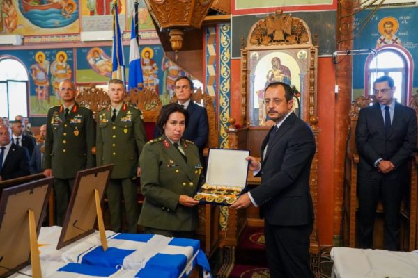 Χθες, Πέμπτη 30 Μαΐου 2024, παρουσία του Προέδρου της Κυπριακής Δημοκρατίας Νίκου Χριστοδουλίδη και του Αρχηγού ΓΕΕΘΑ Στρατηγού Δημήτριου Χούπη, πραγματοποιήθηκε στη Λευκωσία η τελετή επίσημης παραλαβής των λειψάνων των 15 Ελλήνων οπλιτών.