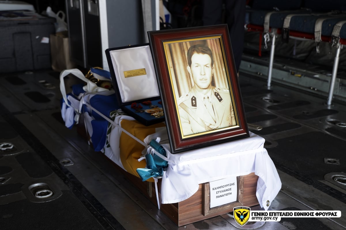 “Τα λείψανα του Αντιστράτηγου Στυλιανού Καλμπουρτζή ο οποίος έπεσε ηρωικά μαχόμενος το καλοκαίρι του 1974 επιστρέφουν στην πατρώα γη για να ταφούν στη Σχολή Πυροβολικού όπως αρμόζει σε επιφανείς ήρωες. Ένας αξιωματικός πιστός μέχρι την τελευταία στιγμή στα ιδεώδη, αρχές και αξίες του Ελληνισμού”, αναφέρει το μήνυμα του Κύπριου Υπουργού Άμυνας.