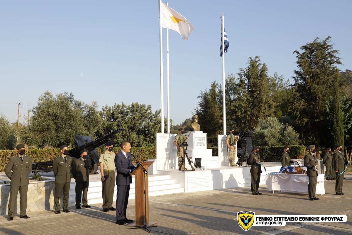 Ο Επίτροπος Προεδρίας ανέφερε, επίσης, ότι «οι θυσίες και το αγωνιστικό φρόνημα των Ηρώων μας έχουν καταγραφεί με χρυσά γράμματα στην μακραίωνη ιστορία μας και αποδεικνύουν ότι ο Ελληνισμός διαθέτει τεράστια αποθέματα ψυχικού μεγαλείου», για να τονίσει ότι «Κύπρος και Ελλάδα παραμένουμε προσηλωμένοι στο στόχο για τερματισμό της κατοχής και κατάργηση του συμβόλου του διαχωρισμού που είναι χαραγμένο στον Πενταδάκτυλο και διαπερνά τα σπλάχνα της μαρτυρικής μας γης».