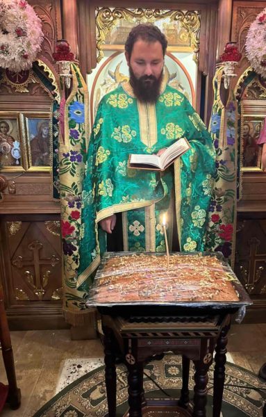 Μετά το πέρας της Θείας Ευχαριστίας προσφέρθηκε εόρτιο κέρασμα στους πιστούς από τον π. Αστέριο.
