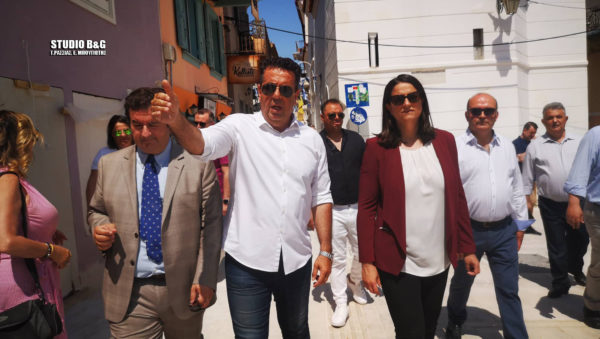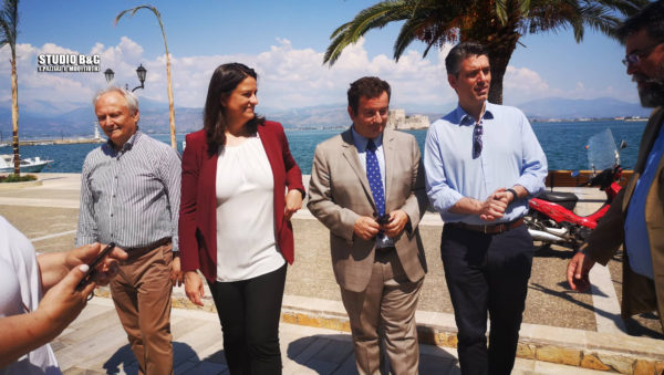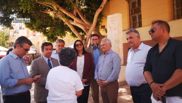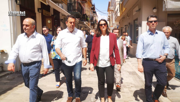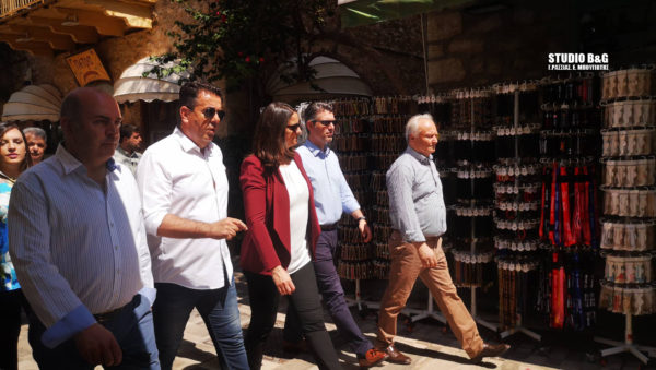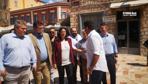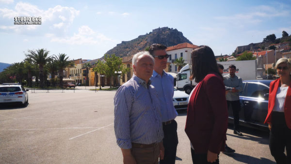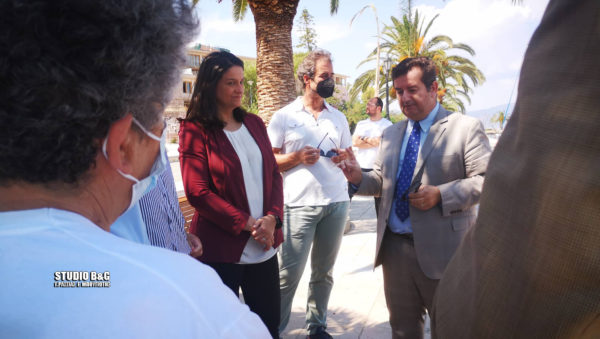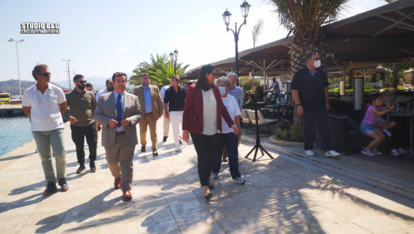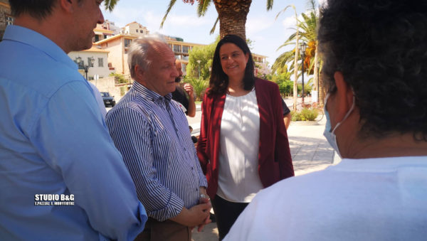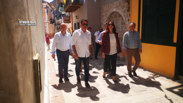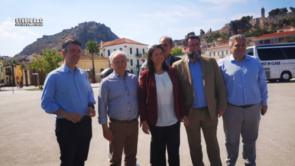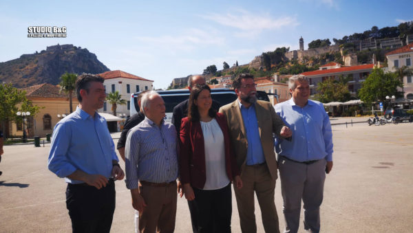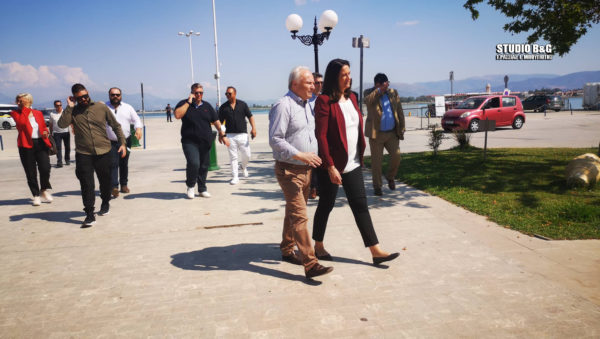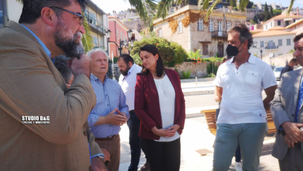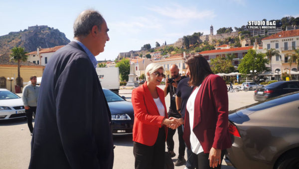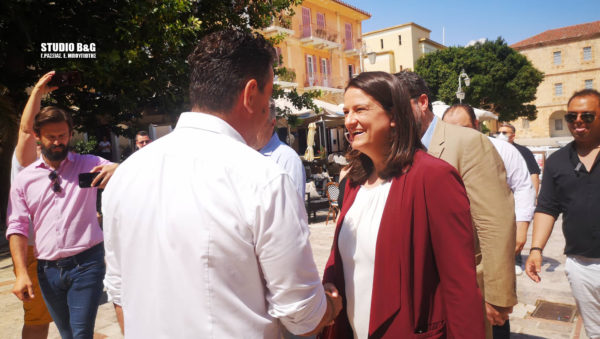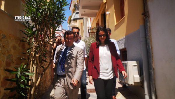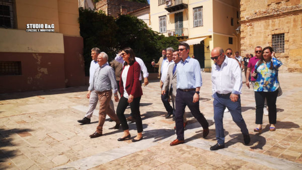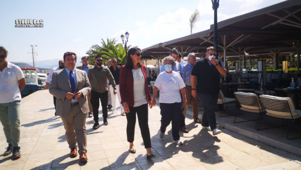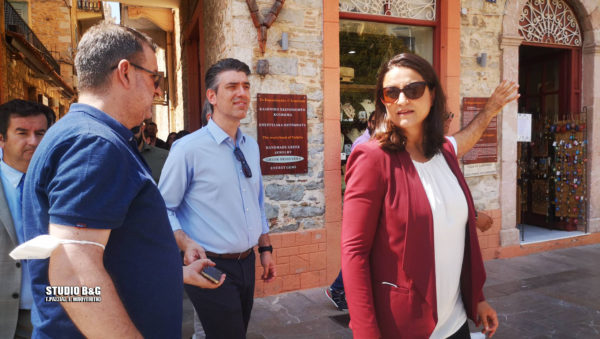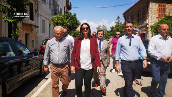 Η υπουργός εν συνεχεία συνοδευόμενη από τον βουλευτή Αργολίδας Γιάννη Ανδριανό, τον βουλευτή Μεσσηνίας Μίλτο Χρυσομάλη, τον βουλευτή επικρατείας Βασίλη Οικονόμου και Τάσο Γαϊτάνη εκπρόσωπο τύπου της ΝΔ, επισκέφτηκε έργα του υπουργείου Πολιτισμού, όπως την καστρονησίδα Μπούρτζι, στην οποία έχουν ολοκληρωθεί τα έργα συντήρησης, το παλιό Τελωνείο, το παλιό Τζαμί Τριανό στην πλατεία Συντάγματος, τον Ιερό Ναό του Αγίου Σπυρίδωνα και τον Ιερό Μητροπολιτικό Ιερό Ναό του Αγίου Γεωργίου.