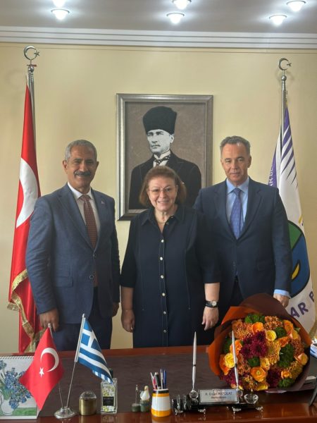 Η Υπουργός Πολιτισμού Λίνα Μενδώνη με τον Δήμαρχο Αdalar (Πριγκιποννήσων) Ercan Akpolat και τον Γενικό Πρόξενο στην Κωνσταντινούπολη Πρέσβη Κωνσταντίνο Κούτρα