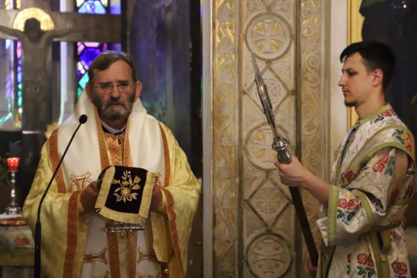 Την Θεία Λειτουργία τέλεσε ο Επίσκοπος Αβύδου Κύριλλος ο οποίος έψαλε και μίλησε στη Ρωσική Γλώσσα.