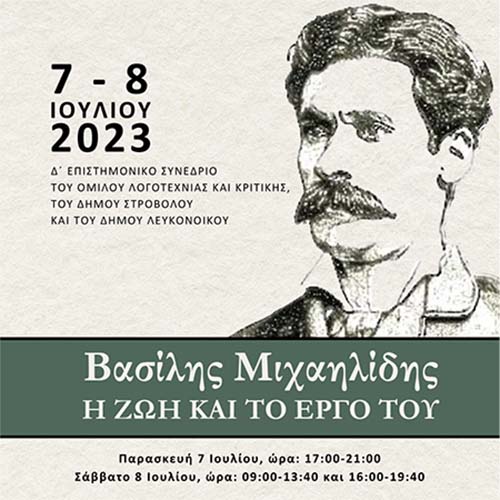 Tο Δ΄ Επιστημονικό Συνέδριο του Ομίλου Λογοτεχνίας και Κριτικής, συνδιοργανώνεται από τον Δήμο Στροβόλου και τον Δήμο Λευκονοίκου στις 7 και 8 Ιουλίου 2023, στο Μουσείο Εθνομάρτυρα Αρχιεπισκόπου Κυπριανού (απέναντι από την εκκλησία Παναγίας Χρυσελεούσας, στον Στρόβολο), με θέμα τη ζωή και το έργο του σημαντικού κύπριου ποιητή Βασίλη Μιχαηλίδη.
