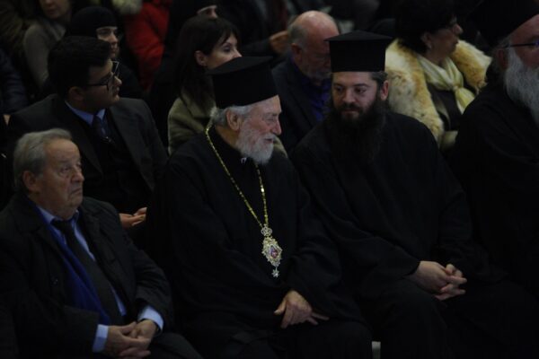 Ακολούθως, χαιρετισμό απηύθυναν: ο εκπρόσωπος του Οικουμενικού Πατριάρχου κ.κ. Βαρθολομαίου Αρχιμ. Βαρνάβας Γιάγκου, Ηγούμενος της ΙΜ. Αγίας Θεοδώρας Θεσσαλονίκης, ο Εκπρόσωπος του Παναγιωτάτου Μητροπολίτου Θεσσαλονίκης κ. Ανθίμου, Σεβ. Μητροπολίτης Λαγκαδά κ. Ιωάννης και ο Υφυπουργός Μακεδονίας- Θράκης κ. Θεόδωρος Καράογλου. Την εκδήλωση τίμησαν με την παρουσία τους ο Σεβ. Μητροπολίτης Μιλήτου κ. Απόστολος, Βεροίας κ. Παντελεήμων, πρ. Άρτης κ. Ιγνάτιος, Γουμενίσσης κ. Δημήτριος, Ζιχνών και Νευροκοπίου κ. Ιερόθεος, Κοζάνης κ. Παύλος, Νεαπόλεως κ. Βαρνάβας, Άρτης κ. Καλλίνικος, Λαγκαδά κ. Ιωάννης, Κίτρους και Κατερίνης κ. Γεώργιος, Μαρωνείας κ. Παντελεήμων, Νέας Κρήνης και Καλαμαριάς κ. Ιουστίνος, Ιωαννίνων κ. Μάξιμος, Λαρίσης κ. Ιερώνυμος, Σισανίου και Σιατίστης κ. Αθανάσιος, ο Επίσκοπος Θερμών κ. Δημήτριος, Εκπρόσωποι των Σεβ. Μητροπολιτών Κιλκισίου κ. Εμμανουήλ και Ελευθερουπόλεως κ. Χρυσοστόμου.