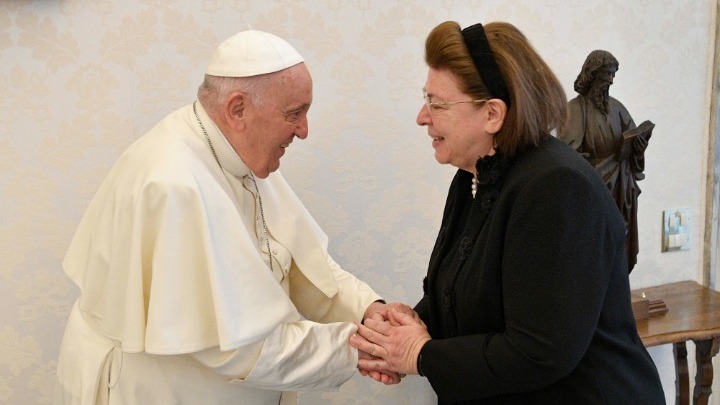 Η υπουργός Πολιτισμού & Αθλητισμού, Λίνα Μενδώνη, έγινε δεκτή, σήμερα στο Βατικανό από τον Πάπα Φραγκίσκο. Η συνάντηση πραγματοποιήθηκε σε ιδιαίτερα θερμό κλίμα μετά από πρόσκλησή του ποντίφικά και, σύμφωνα με πληροφορίες, ήταν διάρκειας σαράντα πέντε λεπτών.
