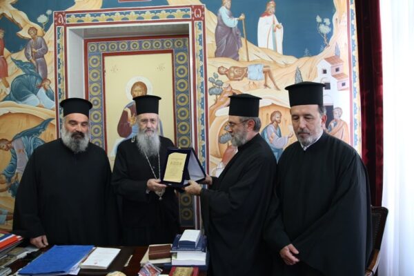 Ἐκ μέρους τοῦ Συνδέσμου Κληρικῶν ταξίδευσαν στήν Ναύπακτο γιά νά παραδώσουν τήν τιμητική πλακέτα στόν Σεβασμιώτατο ὁ Πρόεδρος Πρωτοπρεσβύτερος π. Γεώργιος Σελλῆς, ὁ π. Γεώργιος Βαμβακίδης καί ὁ π. Μιχαήλ Μεντζάκης.