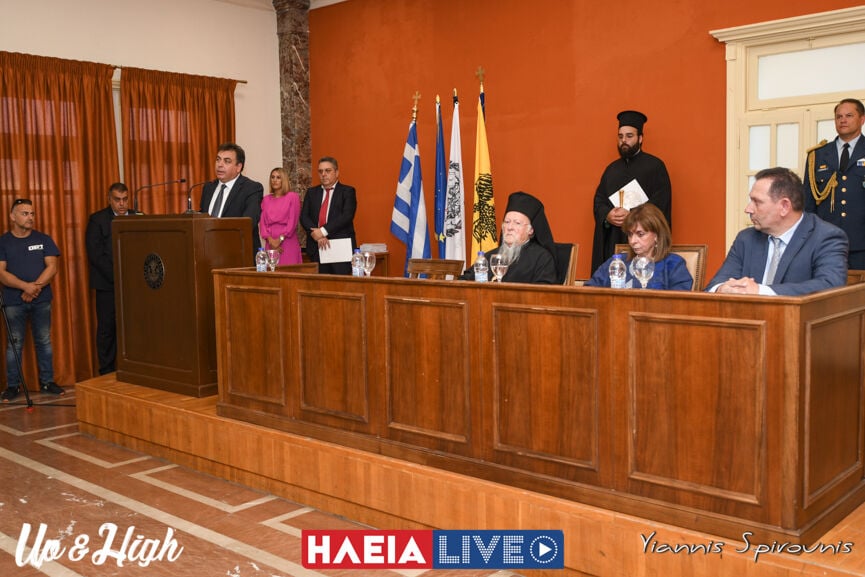 Αυτά τόνισε, μεταξύ άλλων, ο Οικουμενικός Πατριάρχης, Βαρθολομαίος, στην αντιφώνησή του προς τον δήμαρχο Πύργου, Παναγιώτη Αντωνακόπουλο, κατά την διάρκεια της τελετής ανακήρυξής του σε επίτιμο δημότη, η οποία πραγματοποιήθηκε στο δημοτικό μέγαρο της πόλης.