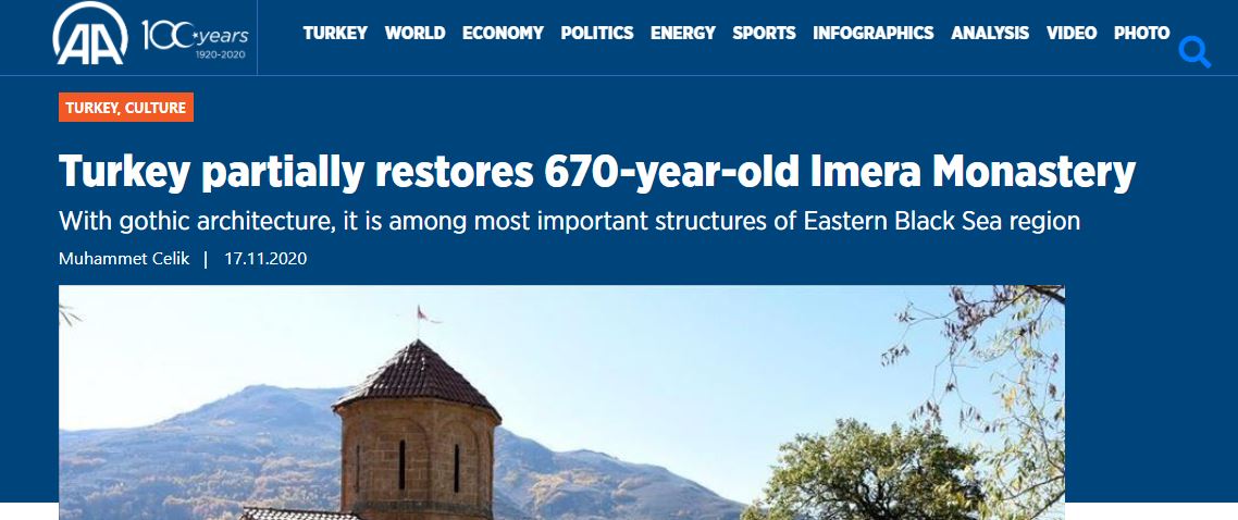Ολοκληρώθηκε η μερική αποκατάσταση της Ιερά Μονής του Αγίου Ιωάννη του Προδρόμου στην Ίμερα του Πόντου, στην περιοχή της Μαύρης Θάλασσας, όπως αναφέρει δημοσίευμα του πρακτορείου Anadolu, προσθέτοντας ότι το “χριστιανικό-ορθόδοξο μοναστήρι είναι από τα πιο σημαντικά θρησκευτικά μνημεία της περιοχής της Ανατολικής Μαύρης Θάλασσας”.