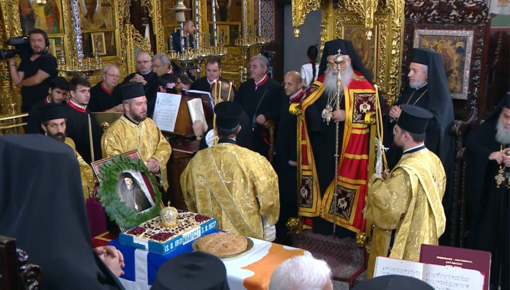 Από την πλευρά του ο Αρχιεπίσκοπος Κύπρου κ. Γεώργιος τόνισε ότι «ήταν μοναδική προσωπικότητα ο Αρχιεπίσκοπος Μακάριος για την Κύπρο» και υπέδειξε πως «τιμώντας τον σήμερα καλούμαστε να παραδειγματιστούμε από τη στάση του στον αγώνα, που είναι πράγματι μακροχρόνιος για την απελευθέρωση της πατρίδας μας».