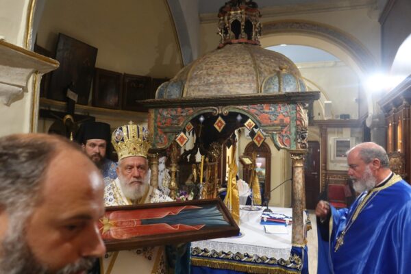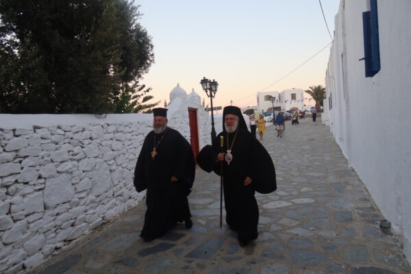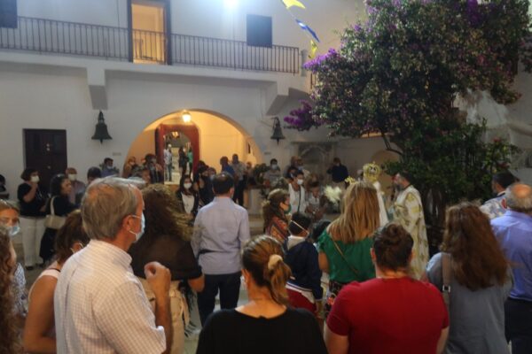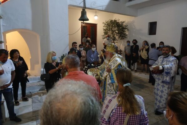 Πλήθος φιλευσεβών Μυκονίων και παρεπιδημούντων παραθεριστών κατέκλυσαν το Καθολικό και τους αύλιους χώρους της πολυαιώνιας Ιεράς και ιστορικής Μονής της Παναγίας Τουρλιανής, στην Άνω Μερά Μυκόνου, τηρούντες τα διατεταγμένα μέτρα υγειονομικής προστασίας, όπου τελέσθηκε ο Μέγας Εσπερινός της Αποδόσεως της Κοιμήσεως της Θεοτόκου, προεξάρχοντος του Σεβασμιωτάτου κ. Δωροθέου Β’, συμπαραστατουμένου από τους Εφημερίους της Μυκόνου και από τη Σύρο, με την παρουσία της Βουλευτού Κυκλάδων κας Αικατ. Μονογυιού, του Θεματικού Αντιπεριφερειάρχη Διαφάνειας κ. Στυλ. Μπρίγκου, της διατελεσάσης Πρωτοδίκου Μυκόνου, του Προέδρου της Τοπικής Κοινότητας Άνω Μεράς κ. Πέτρου Σταυρακόπουλου και της Προέδρου της Αδελφότητος Ανωμεριτών Μυκόνου κας Φραγκίσκας Κουνάνη.