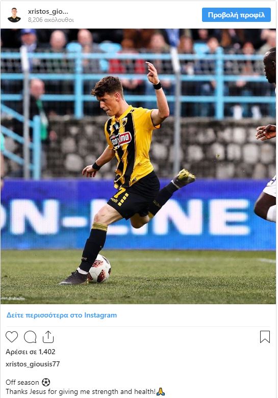 “Ευχαριστώ τον Ιησού που μου δίνει δύναμη και υγεία” δήλωσε με έμφαση σε μέσο κοινωνικής δικτύωσης (σ.σ. Instagram) ο ποδοσφαιριστής της ΑΕΚ Χρήστος Γιούσης στέλνοντας το δικό του μήνυμα μέσω του προσωπικού του λογαριασμού.