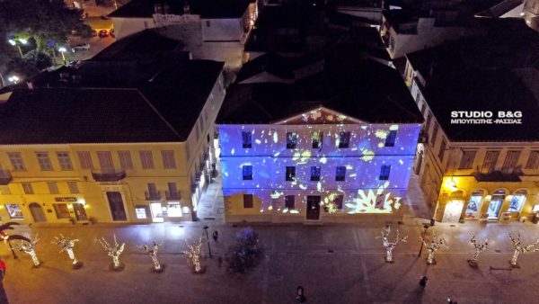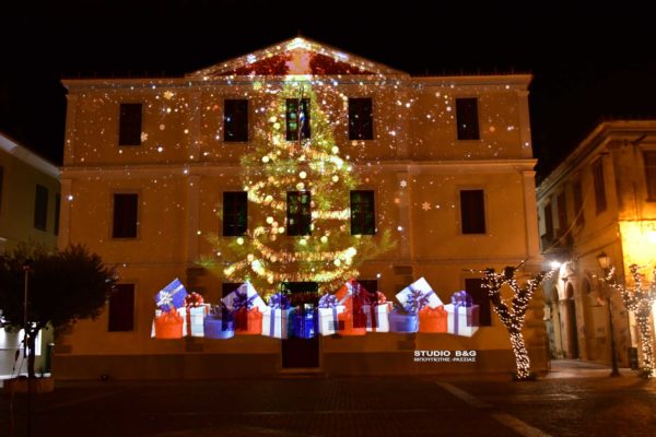 Εντυπωσίασε μικρούς και μεγάλους η new media art τεχνολογία πολυμέσων “3D Projection Mapping”, την οποία ο Δήμος Ναυπλιέων χρησιμοποίησε για να φωταγωγήσει φέτος τα Χριστούγεννα την πρόσοψη του Δημαρχείου στο Ναύπλιο, την Τετάρτη 22 Δεκεμβρίου 2021.