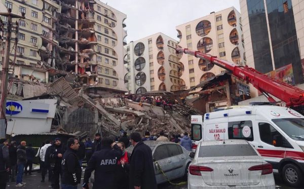 BREAKING: Emergency services are responding to a collapsed apartment building in Diyarbakır following M7.8 earthquake in Turkey.#Turkey #Earthquake