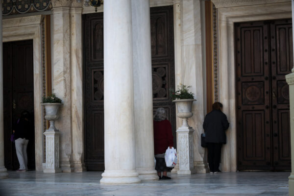 Κεκλεισμένων των θυρών τελέστηκε η Θεία Λειτουργία σήμερα στον Καθεδρικό Ναό Αθηνών αυτό όμως δεν πτόησε ορισμένους πιστούς οι οποίοι βρέθηκαν έξω από το Ναό προκειμένου να προσευχηθούν.
