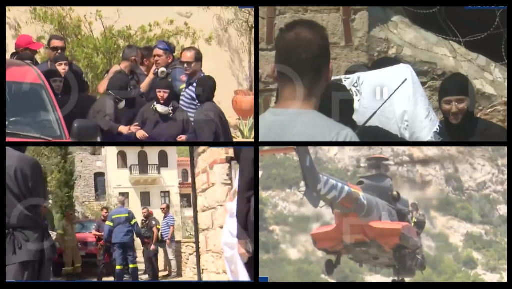 Στο βίντεο φαίνονται οι δραματικές προσπάθειες των αστυνομικών και των ανδρών της Πυροσβεστικής να πείσουν τις μοναχές να εκκενώσουν το μοναστήρι.