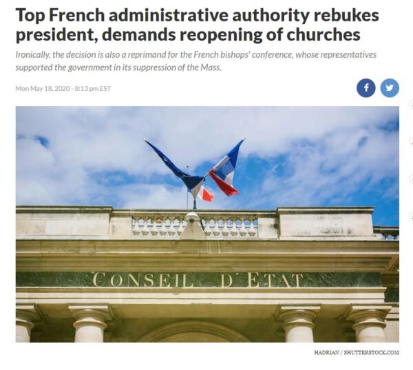 Πληροφορίες από : https://www.lifesitenews.com/blogs/top-french-administrative-authority-rebukes-president-demands-reopening-of-churches?utm_content=bufferbeadb&utm_medium=LSN%2Bbuffer&utm_source=facebook&utm_campaign=LSN