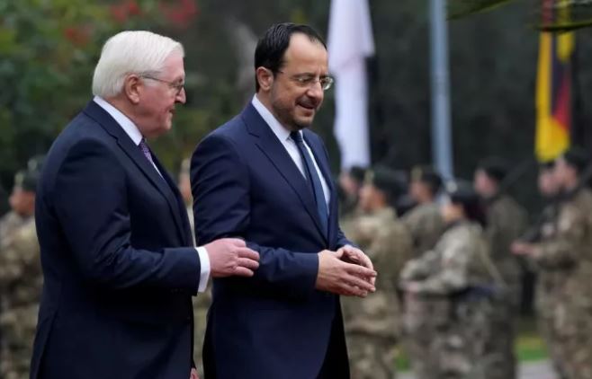 Η Γερμανία στηρίζει μια διζωνική, δικοινοτική λύση για το πολιτικό ζήτημα της Κύπρου, στη βάση των παραμέτρων των Ηνωμένων Εθνών, τόνισε ο Ομοσπονδιακός Πρόεδρος της Γερμανίας Φρανκ-Βάλτερ Σταϊνμάιερ κατά τη συνάντησή του με τον Πρόεδρο της Κυπριακής Δημοκρατίας Νίκο Χριστοδουλίδη, στην Κύπρο, και προειδοποίησε την Τουρκία ότι η στάση της στο Κυπριακό επηρεάζει και την προσέγγισή της προς την Ευρώπη.