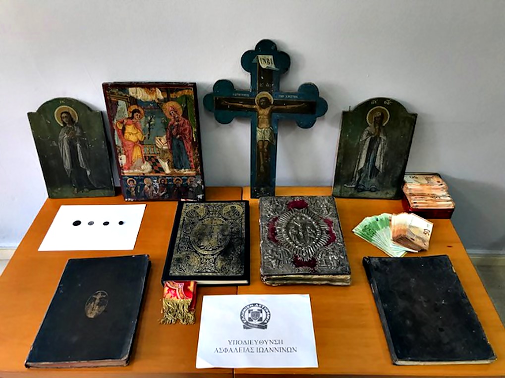 - Θείο και Ιερό Ευαγγέλιο έτους 1818 καθώς και χάλκινο νόμισμα (κλασικών ή ελληνιστικών χρόνων) με παραστάσεις κεφαλής και σκύλου, τα οποία εμπίπτουν στις προστατευτικές διατάξεις της σχετικής νομοθεσίας