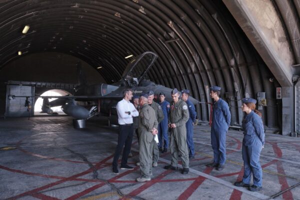 Την 115 Πτέρυγα Μάχης της Πολεμικής Αεροπορίας στην Αεροπορική Βάση της Σούδας επισκέφτηκε στη συνέχεια και μετά τη Θεία Λειτουργία ο πρωθυπουργός, Κυριάκος Μητσοτάκης.