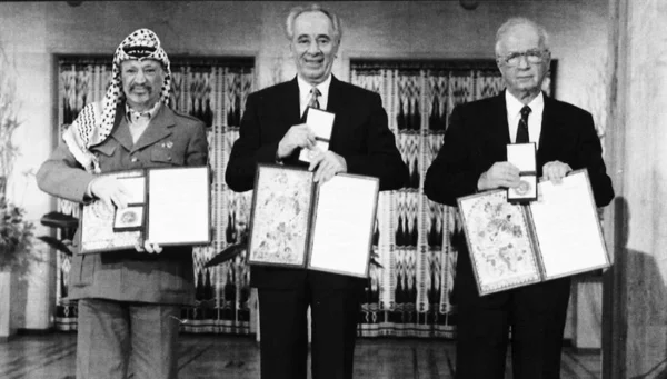 Το 1993, ο Γιτζάκ Ραμπίν και ο Γιάσερ Αραφάτ υπέγραψαν τη συμφωνία του Όσλο, που προέβλεπε την αποχώρηση των Ισραηλινών από τη λωρίδα της Γάζας. Η χειραψία που ακολούθησε, αν και αμήχανη, ήταν ιστορική.